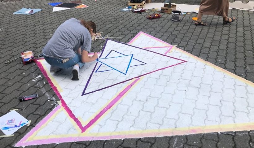 Pod ich czujnym okiem, dzieci i młodzież, przez dwa dni projektowała swoje malunki, stworzono szablony. W czwartek (1.08) dzieci naniosły malunki na kostkę brukową przed budynkiem WCK.