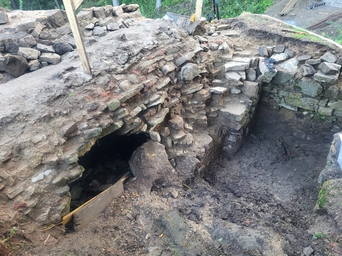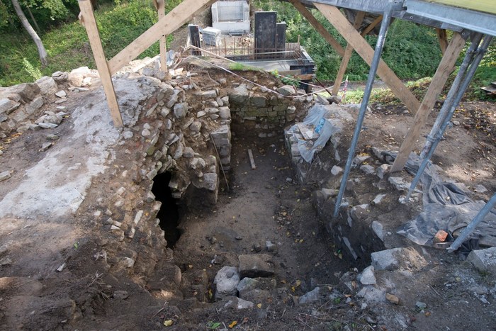 Tak było latem. Po kilku miesiącach udało się usunąć tyle ziemi, że można już wejść do niektórych pomieszczeń. Są to m.in. piwnice od południa i północy zamku.