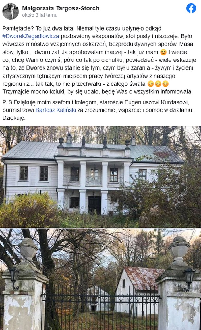 W 2018 roku eksponaty z Dworu Zegadłowicza w Gorzeniu przejęła Sucha Beskidzka. Opustoszałe budynki byłego muzeum stanowią własność Skarbu Państwa i niewiele się tam działo do tej pory. Okazuje się bowiem, że starostwo ma plan.