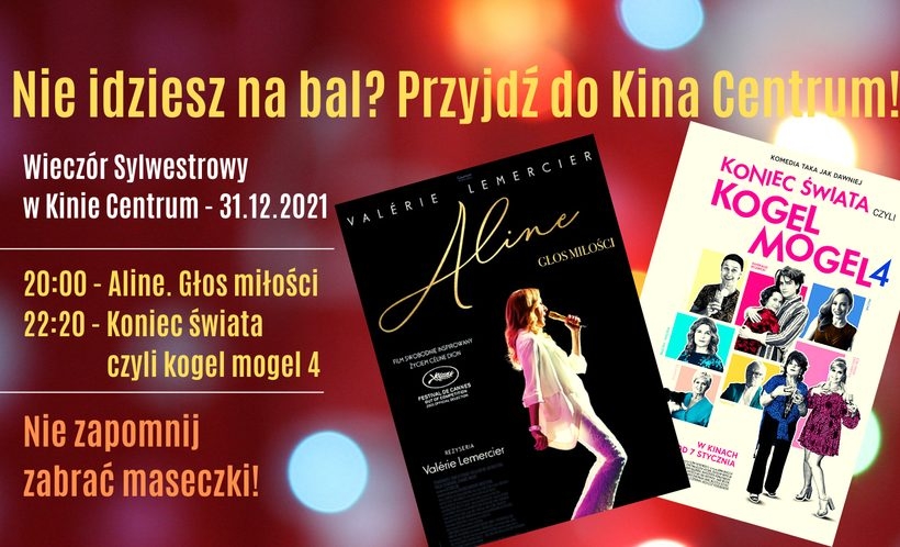 Wadowickie Centrum Kultury zamiast na bal zaprasza na „Wieczór Sylwestrowy w Kinie Centrum”. Dla tych, którzy nie wybierają się na imprezy noworoczne, ale nie chcą spędzić Sylwestra w domu, czekają dwa seanse dawno oczekiwanych filmów.