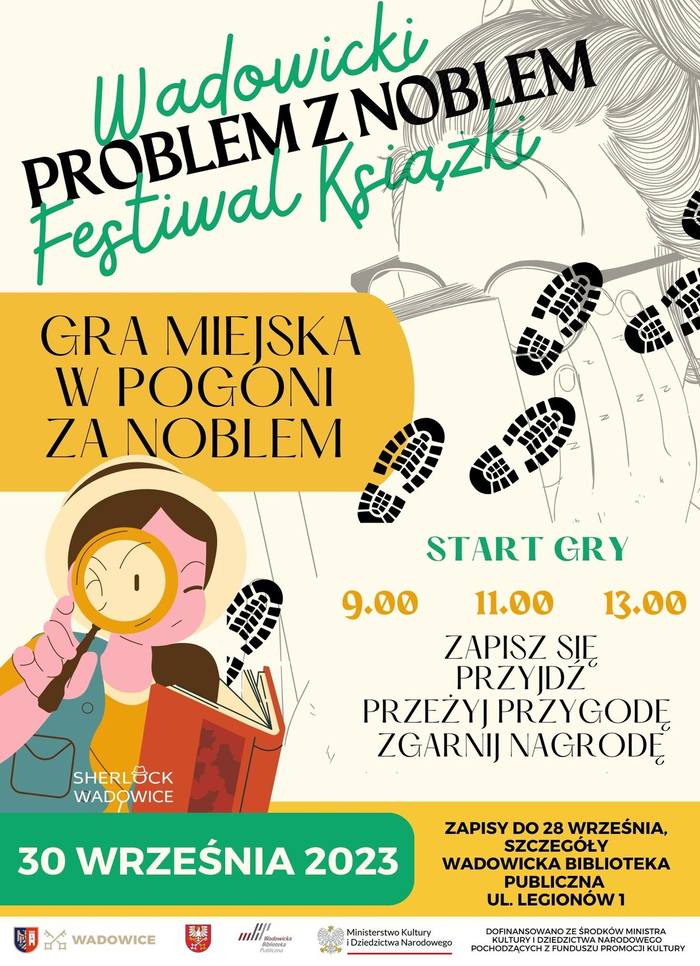 Wadowicka Biblioteka Publiczna we współpracy z Sherlock Wadowice zaprasza na grę terenową „W pogoni za Noblem”. To świetny sposób na rodzinne spędzenie wolnego czasu i poznanie ciekawej historii polskich noblistów.