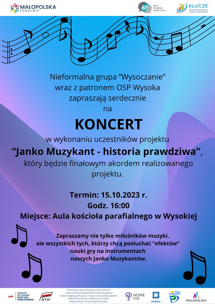 „Janko Muzykant – historia prawdziwa” to projekt realizowany przez nieformalną grupę Wysoczanie w ramach dotacji z programu wspierającego mieszkańców województwa małopolskiego Małopolska Lokalnie.