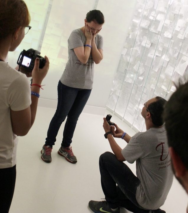 Vinicius Pedroso Godinho poprosił o rękę Thais Cristinę da Silvę Oliveirę 27 lipca. Świadkami oświadczyn była grupa, z którą para przyjechała na Światowe Dni Młodzieży do Polski. Zbieg okoliczności chciał, że w tym czasie papieskie muzeum zwiedzał belgijski biskup Jean-Pierre Delville, który udzielił parze błogosławieństwa.