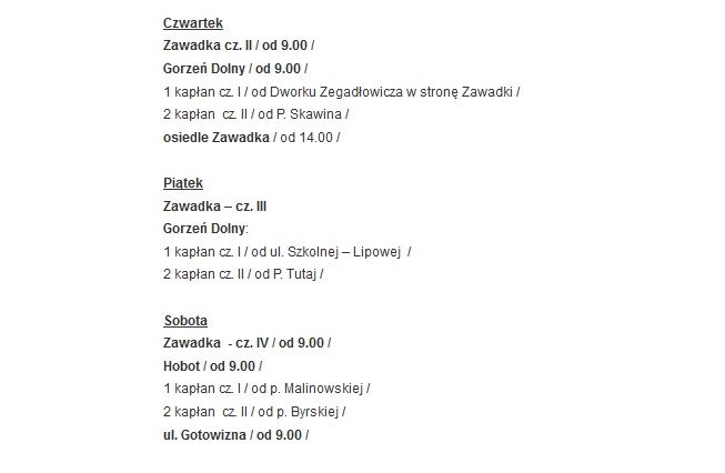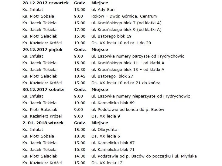 Proboszczowie w niedzielę w ogłoszeniach parafialnych poinformowali już wiernych o rozkładzie kolędy w nadchodzącym tygodniu. Przydatne informacje o planach wizyt księży w domach można znaleźć również na witrynach internetowych parafii.