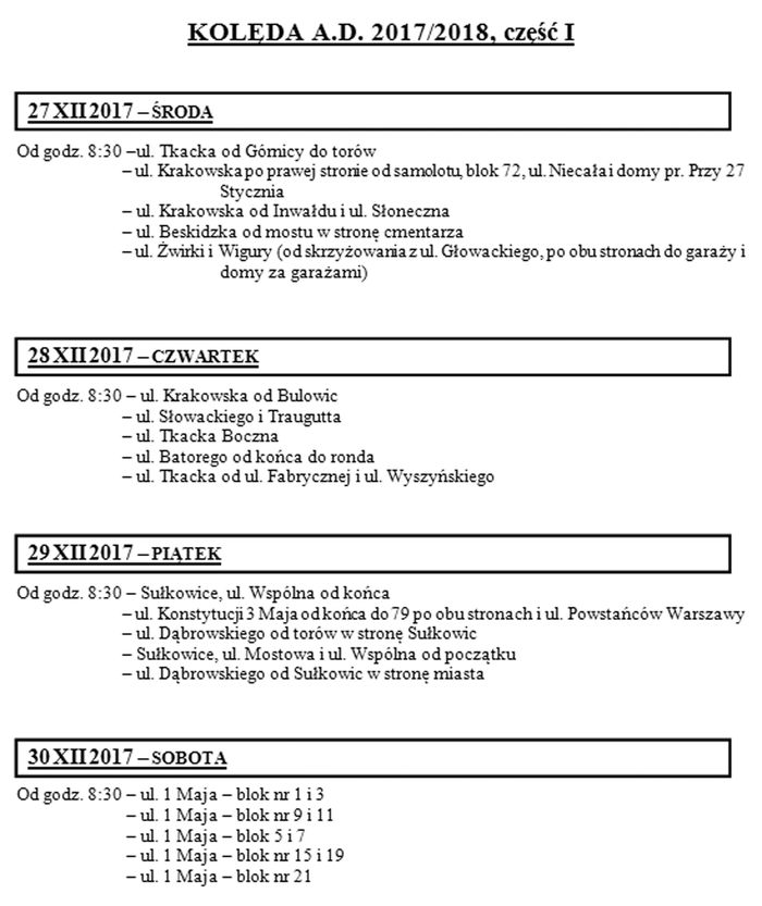 Parafia pw. Św. Stanisława BM w Andrychowie ma już pełen plan kolęd opublikowany na stronie internetowej TUTAJ.