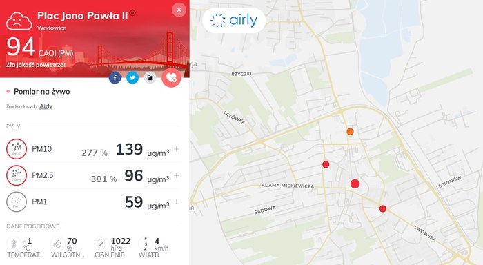 Co ciekawe na mapach zagrożeń jakości powietrza prezentowanych przez Główny Inspektorat Ochrony Środowiska, tylko na Dolnym Śląsku przekroczono tak zwane stany alarmowe. Chodzi zapewne o przeliczenie przekroczeń norm jakości na ilość godzin, w których się utrzymują.