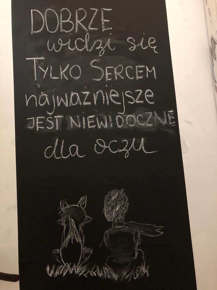 W jednej z kabin młodzież przywitał m.in. cytat z Antoine de Saint-Exupéry. „Dobrze widzi się tylko sercem. Najważniejsze jest niewidoczne dla oczu”
