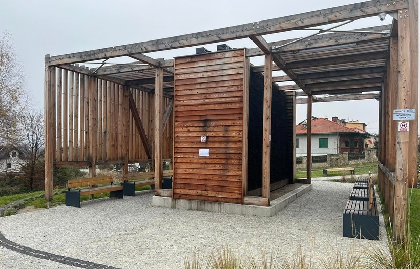 Tężnia w Wadowicach została wybudowana już w zeszłym roku, ale dopiero w połowie 2022 roku udało ją się uruchomić. Kilka miesięcy zajęły procedury związane z podłączeniem instalacji do sieci energetycznej i rozruch.