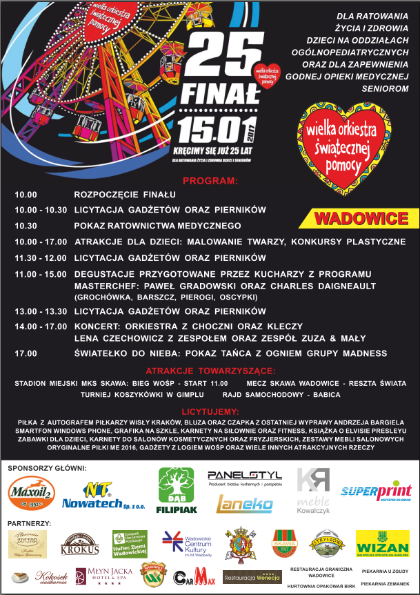 Pozostałe informacje oraz dokładny plan imprezy znajdziecie na stronie WOŚP Wadowice.