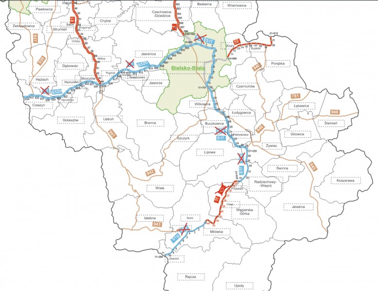 Droga ekspresowa S52 przebiegać będzie na trasie: (Brno) granica państwa – Cieszyn – Bielsko-Biała – S7 (Głogoczów) … – A4 (Balice) – Kraków – S7 (Zastów) – informuje Generalna Dyrekcja Dróg Krajowych i Autostrad w Krakowie.