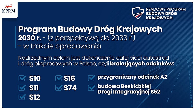 Premier Mateusz Morawiecki zaznaczył, że największy w historii Polski program budowy dróg o budżecie na ponad 290 mld zł „tworzy spójną całość infrastrukturalną”. Powstanie „wiele brakujących odcinków, obwodnic i zjazdów, tworzących znakomite perspektywy rozwojowe” – mówił. Zwracał uwagę, że ten program budowy dróg opiera się w ponad 80 proc. na budżecie państwa.