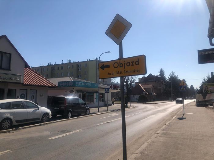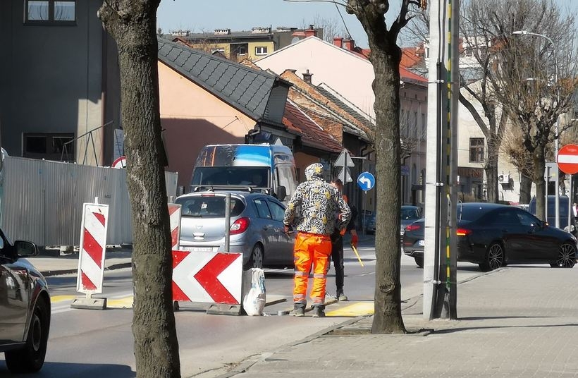 We wtorek (21.03) na alei Matki Bożej Fatimskiej przy skrzyżowaniu z Poprzeczną w Wadowicach pojawiły się tymczasowe żółte pasy. Oprócz znaków poziomych, postawiono tez znaki pionowe informujące o objazdach.