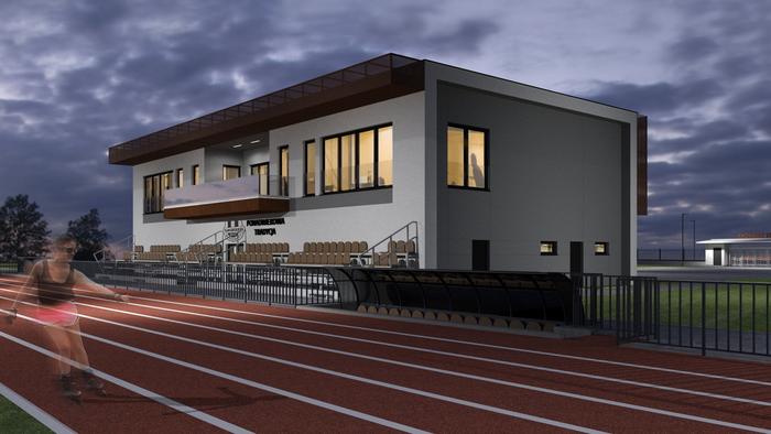 Będzie to dwupiętrowy obiekt o powierzchni ok. 600 m2, w którym znajdą się m.in. szatnie dla sportowców, pokoje dla sędziów i trenerów, magazyn, kotłownia, zaplecze kuchenne, pomieszczenia biurowe, siłownia, sala gimnastyczna i sala konferencyjna.