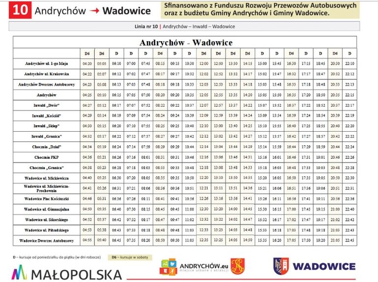 Organizator tej komunikacji, czyli Andrychów obiecuje „zagęścić” siatkę połączeń na tej trasie. Takie słowa przynajmniej padły na konferencji prasowej, którą zorganizowano o godzinie 4:20, podczas pierwszego kursu nowej linii nr 10 w poniedziałek (4.09).