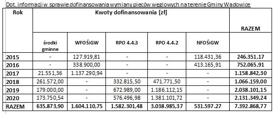 W ciągu ostatnich 5 lat Wadowice, z różnych źródeł finansowania, przeznaczyły na wymianę pieców swoich mieszkańców ponad 7,3 mln zł.