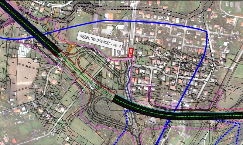 Poniżej węzeł komunikacyjny w Wadowicach: