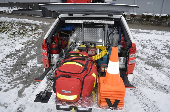 Na wyposażeniu auta znajduje się lekki zestaw ratownictwa technicznego Lukas, torba PSP-R1, deska ortopedyczna z zestawem szyn, kramera, pilarka do drewna, stożki ostrzegawcze, zestaw elektronarzędzi, podręczny sprzęt burzący, sprzęt ratownictwa wodnego, a także wiele niezbędnego sprzętu do działań. Dodatkowo samochód będzie używany do transportu pontonu ratowniczego.