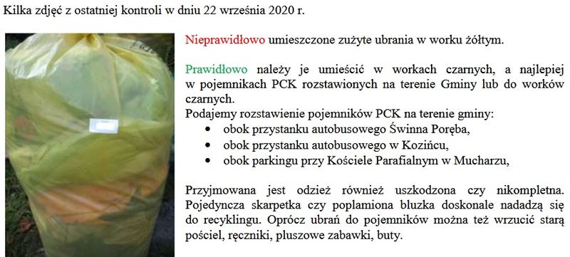 Pierwsze kontrole zostały już przeprowadzone i nie wypadły dobrze. Wychodzi na to, że mieszkańcy gminy Mucharz nie zawsze zdają sobie sprawę z tego, gdzie jakie śmieci powinny lądować. Na dowód urzędnicy porobili zdjęcia i wyjaśniają, jak powinno się prawidłowo zapakować odpady.