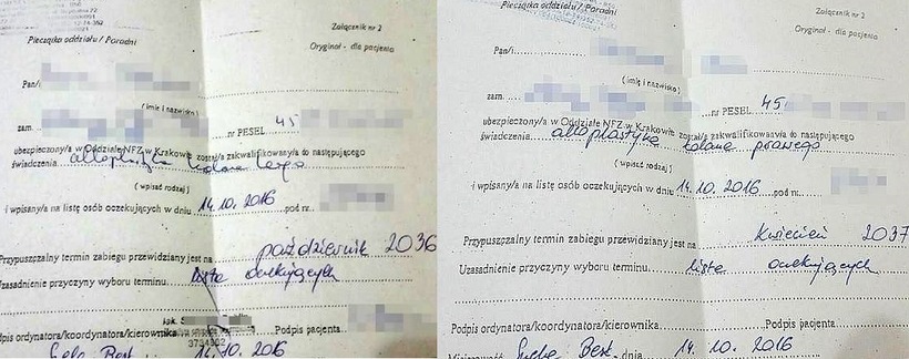 Jakież było zdziwienie seniorki, gdy w szpitalnej poradni została wpisana na listę oczekujących kwalifikującą ją do zabiegu na 2036 i 2037 rok. Trzeba tutaj zaznaczyć, że oba kolana będą operowane osobno rok po roku.