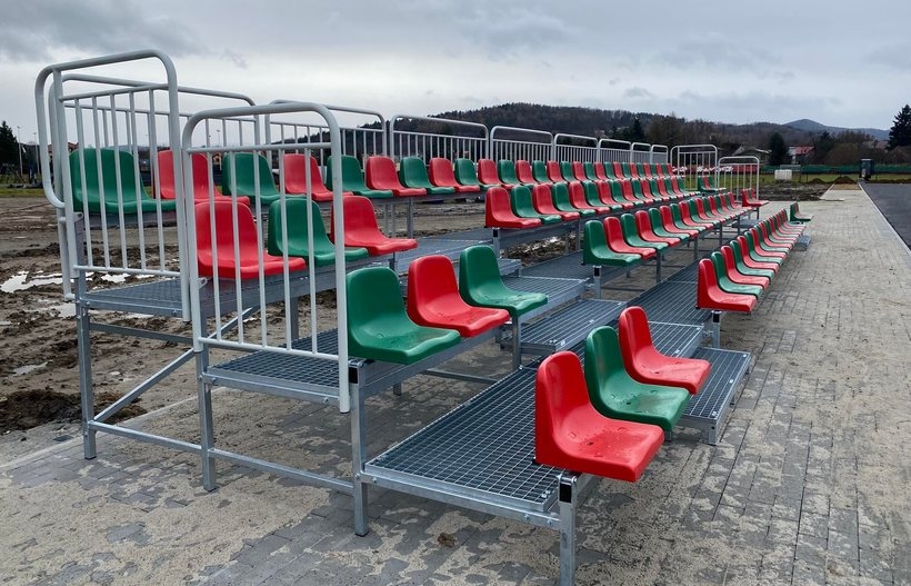 Trybuny, drenaż i podbudowa mata e-layer już są. Brakuje już tylko murawy, bramek, piłkochwytów i słupów oświetleniowych.