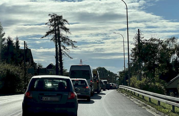 Ogromne korki na obwodnicy Wadowic. Wszystko przez budowę chodnika w Choczni