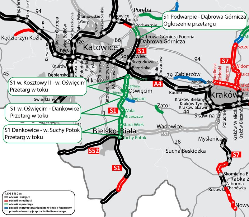 Na mapie widnieje poza tak zwanym limitem finansowym Beskidzka Droga Integracyjna (S52). Inwestycja, która od lat przechodziła burzliwe etapy projektowania cały czas boryka się ze sprzeciwami niektórych środowisk. Inwestor wybiera zatem „najłatwiejsze” do realizacji zadania. Wadowice co najwyżej w niedalekiej przyszłości doczekają się południowej obwodnicy. W październiku tego roku odpowiednie porozumienie w tej sprawie podpisał obecny burmistrz Bartosz Kaliński z ministrem infrastruktury Andrzejem Adamczykiem.