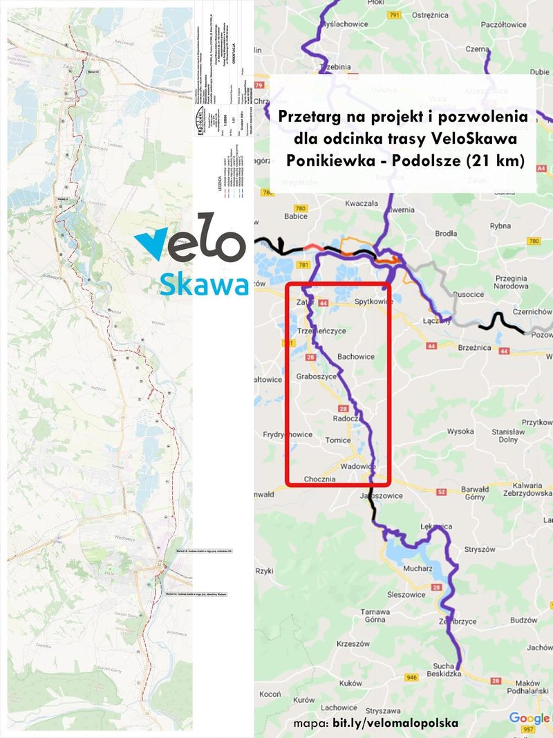Wszystko wskazuje na to, że rusza procedura dalszej budowy ścieżki rowerowej Velo Skawa. Zarząd Dróg Wojewódzkich ogłosił przetarg ma budowę około 21 kilometrów trasy, która pobiegnie śladem dawnej linii kolejowej Podolsze – Zator – Tomice i połączy się z wybudowaną przez Wadowice trasą Velo Skawa przy stadionie MKS Skawa Wadowice.