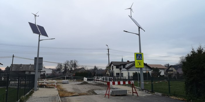 Wykonano nasyp spowalniający dla samochodów. Przy skrzyżowaniu będą też wyznaczone miejsca dla pieszych oraz oświetlenie ledowe zasilane energią słoneczną. W tym miejscu nie ma co się rozpędzać. Większe auta mogą mieć też problem z „przeciśnięciem się” pomiędzy krawężnikami.