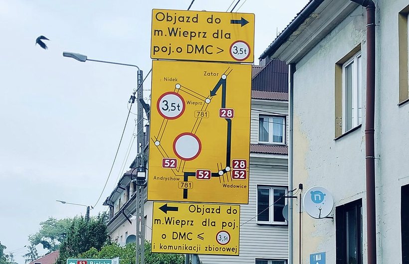 Objazd dla samochodów o dopuszczalnym ciężarze do 3,5 t. oraz autobusów – wg objazdu jak na mapie. Dla samochodów ciężarowych o ciężarze przekraczającym 3,5 t, objazd został wyznaczony z Zatora drogą krajową nr 28 do Wadowic, a następnie drogą krajowa nr 52 do Andrychowa – czytamy w komunikacie ZDW.