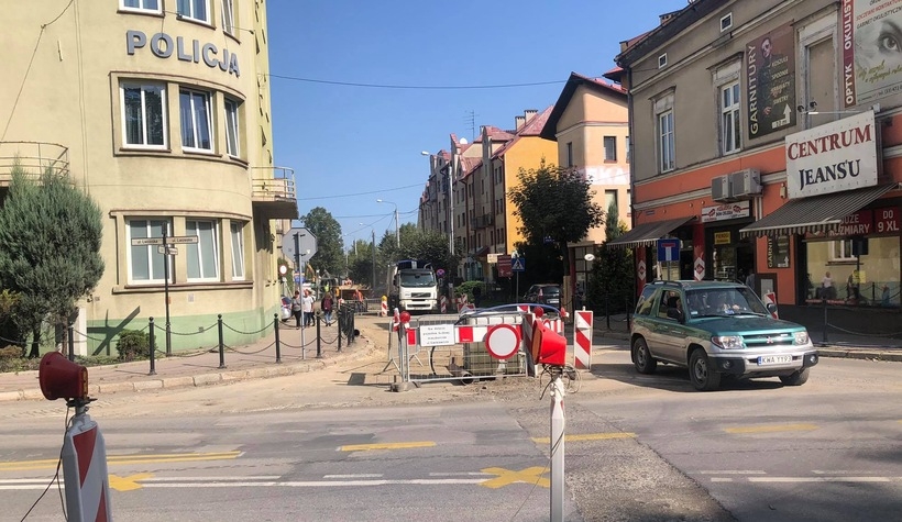 W Wadowicach na skrzyżowanie blisko centrum miasta spotkały się dwa duże remonty ulicy. Ruch w tej części miasta jest ograniczony, kierowcy jakoś to znoszą, ale coraz częściej słychać głosy niezadowolenia ze strony kupców. O co im chodzi?