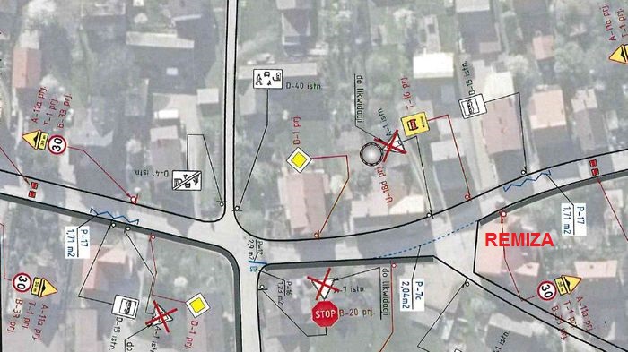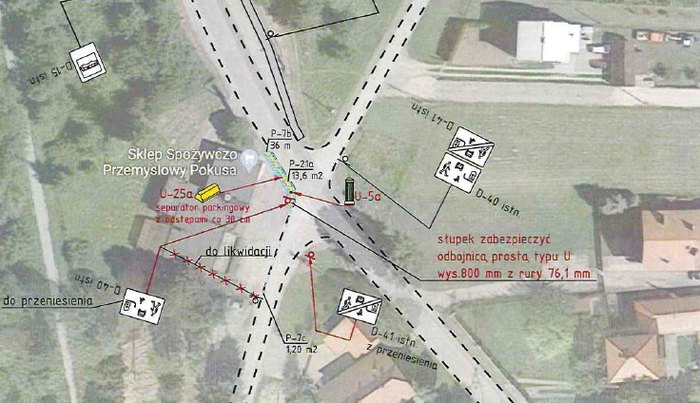 Skrzyżowanie przy sklepie w Jaroszowicach jest bardzo niebezpieczne. Łączą się tutaj drogi osiedlowe z drogą gminną, dodatkowo część skrzyżowania wykorzystywana jest jako parking dla klientów sklepu.