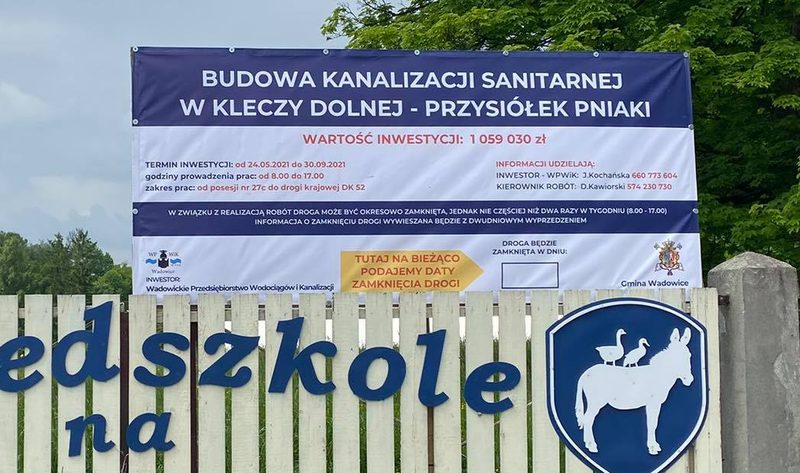 Do października potrwają prace przy budowie kolektorów sanitarnych do domów Kleczy Dolnej Pniaki. Inwestycję realizuje gmina i Wadowickie Przedsiębiorstwo Wodociągów i Kanalizacji.