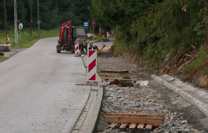 Prace przy budowie chodnika rozpoczęły się wiosną tego roku. Wykonawca – firma „BRUK-SPEC” Mateusz Gancarczyk ze Śleszowic ma je zakończyć w październiku tego roku.