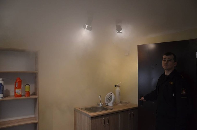 Jest też kominek ze sztucznym ogniem, telefon służący do wzywania pomocy oraz „gorące drzwi”, które razem z wydobywającym się dymem mają sygnalizować, że wewnątrz pali się ogień. Pomieszczenie wyposażono także w meble oraz wykładzinę, tak aby przypominało dziecięcy pokój.
