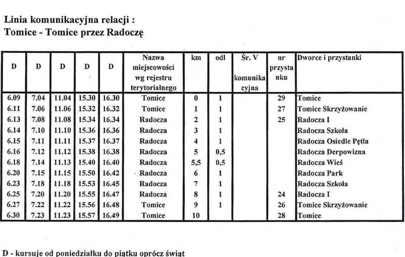 W poniedziałek (08.11) o godzinie 6.09 z przystanku przy Urzędzie Gminy wyruszy na trasę pierwszy bus w ramach bezpłatnej linii komunikacyjnej Tomice – Radocza – Tomice.