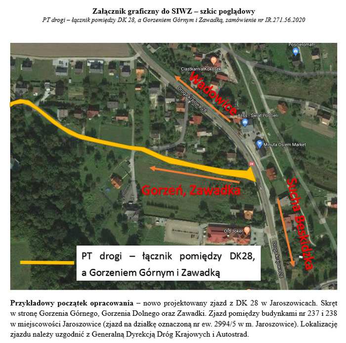 Jeszcze w 2020 roku Wadowice podpisały umowę z projektantem na wykonanie dokumentacji projektowej budowy drogi wraz z chodnikiem pomiędzy DK 28 (odcinek drogi w Jaroszowicach), a Gorzeniem Górnym i Zawadką, oraz rozbudową drogi wzdłuż Dworu Emila Zegadłowicza w Gorzeniu Górnym do skrzyżowania z drogą „Na Iłowiec” w Gorzeniu Górnym wraz z towarzyszącą infrastrukturą techniczną.