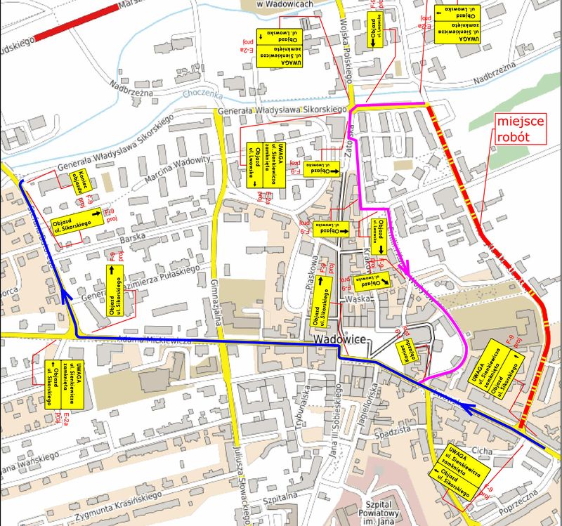 Starostwo Powiatowe w Wadowicach poinformowało, że od poniedziałku, 25 maja, w związku z wykonywaną przebudową , zostanie wprowadzona czasowa organizacja ruchu na ulicy Sienkiewicza w Wadowicach.