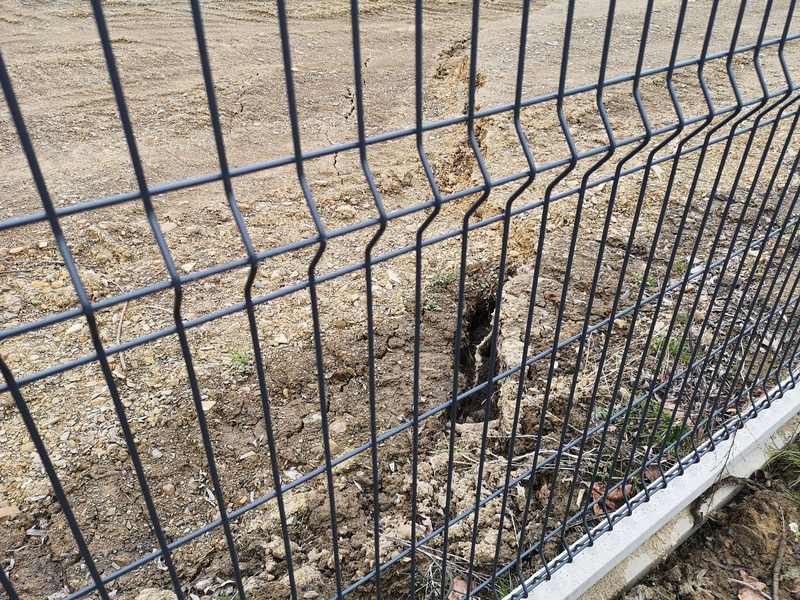 To właśnie właściciele działek sąsiadujący ze wspomnianym terenem zauważyli, że ogrodzenie zaczyna się przekrzywiać, a tuż pod nim osunęła się ziemia.