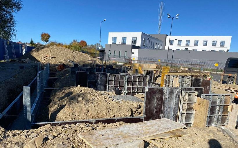 W piątek (22.10) w głębokich wykopach montowano już szalunki na betonowe fundamenty. Prace powinny zakończyć się za rok i będą kosztować gminę około 12 mln zł.