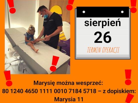 Marysia Szostak potrzebuje pieniędzy na operację nóżki. Jest to jedyna szansa dla dziewczynki, która w swoim trzyletnim życiu przeszła dwie operacje oczu, operację nóżki oraz rączki. Zmagała się też z wieloma problemami zdrowotnymi związanymi z wcześniactwem.