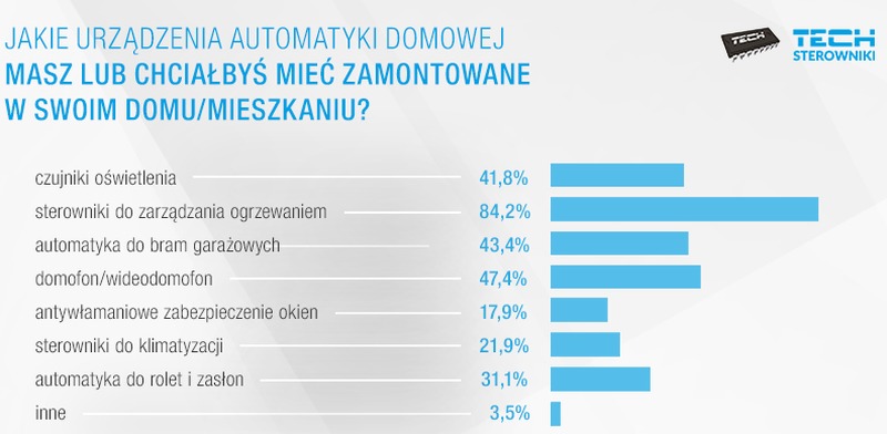 Od połowy lutego do końca marca trwała internetowa ankieta firmy Tech Sterowniki pod hasłem „Ciepły i inteligentny dom w 2021 roku”. Na podstawie udzielanych przez internautów odpowiedzi powstał raport prezentujący jej wyniki, z którym można się zapoznać na blogu firmowym.
