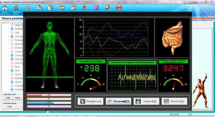 Zebrane przez urządzenie informacje obejmują układ krążenia i naczyń mózgowych, funkcje przewodu pokarmowego, jelit, wątroby i pęcherzyka żółciowego, trzustki, nerek, płuc. Podają też informację o stanie mózgu, tarczycy, skóry, układów kostnego, hormonalnego, rozrodczego i odpornościowego. Ponadto z raportów dowiesz się, jaka jest gęstość mineralna kości. Analiza kwantowa odpowie również na pytanie, ile toksyn, metali ciężkich i alergenów zanieczyszcza Twój organizm.