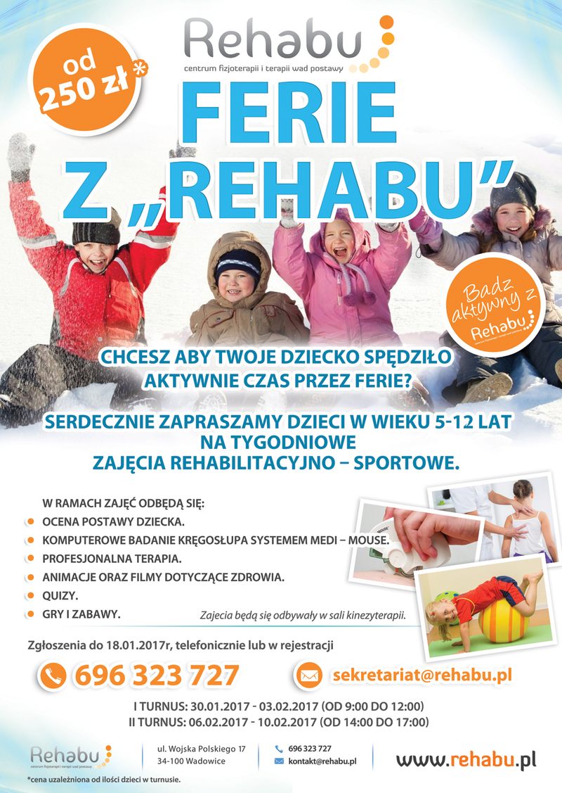 Zgłoszenia można dokonać telefonicznie 696-323-727 lub osobiście w rejestracji Rehabu ul. Wojska Polskiego 17 w Wadowicach do 18.01.2017.