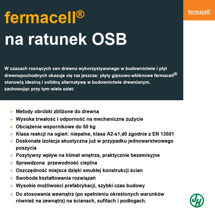 Podczas gdy różne płyty drewnopochodne są wymagane do różnych zastosowań, płyty gipsowo-włóknowe fermacell® mogą być podobnie wykorzystywane zarówno do konstrukcji ścian jak i sufitów. Znajdują one uniwersalne zastosowanie jako płyty budowlane, do przegród z wymaganą określoną odpornością ogniową, czy do pomieszczeń wilgotnych. Ponadto płyty fermacell® mogą być montowane natychmiast po dostawie bez straty czasu.