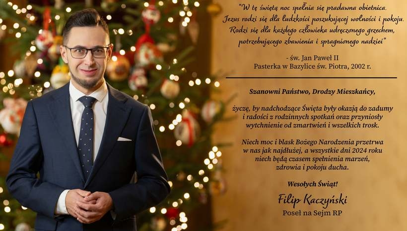 Filip Kaczyński, Poseł na Sejm RP, składa życzenia z okazji Bożego Narodzenia 2023
