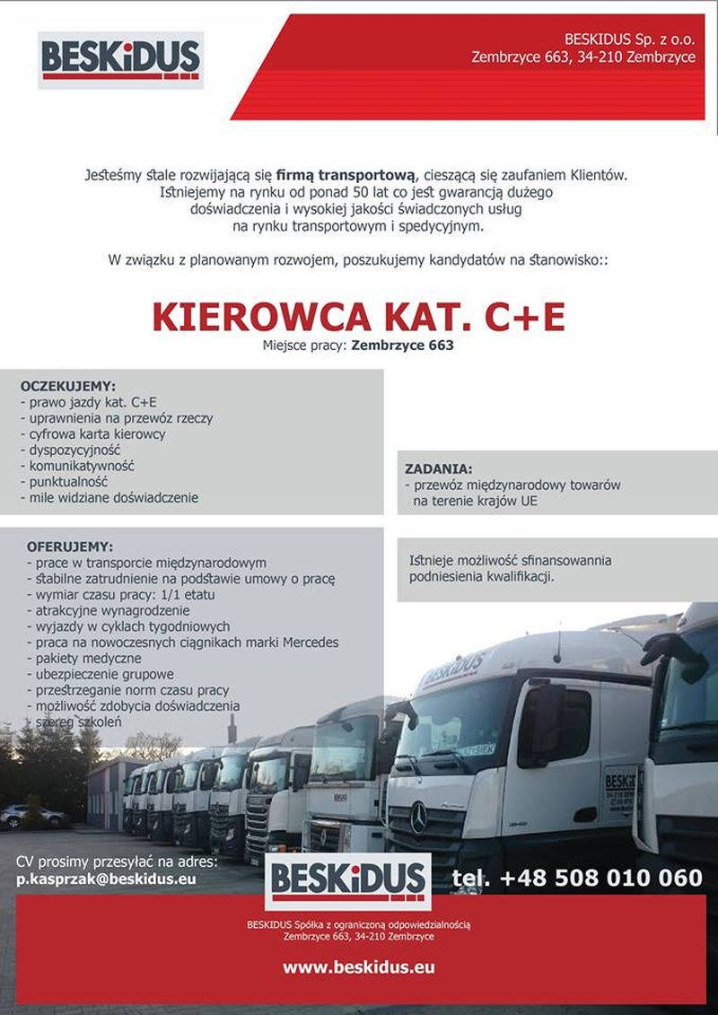 CV prosimy przesyłać na adres: p.kasprzak@beskidus.eu