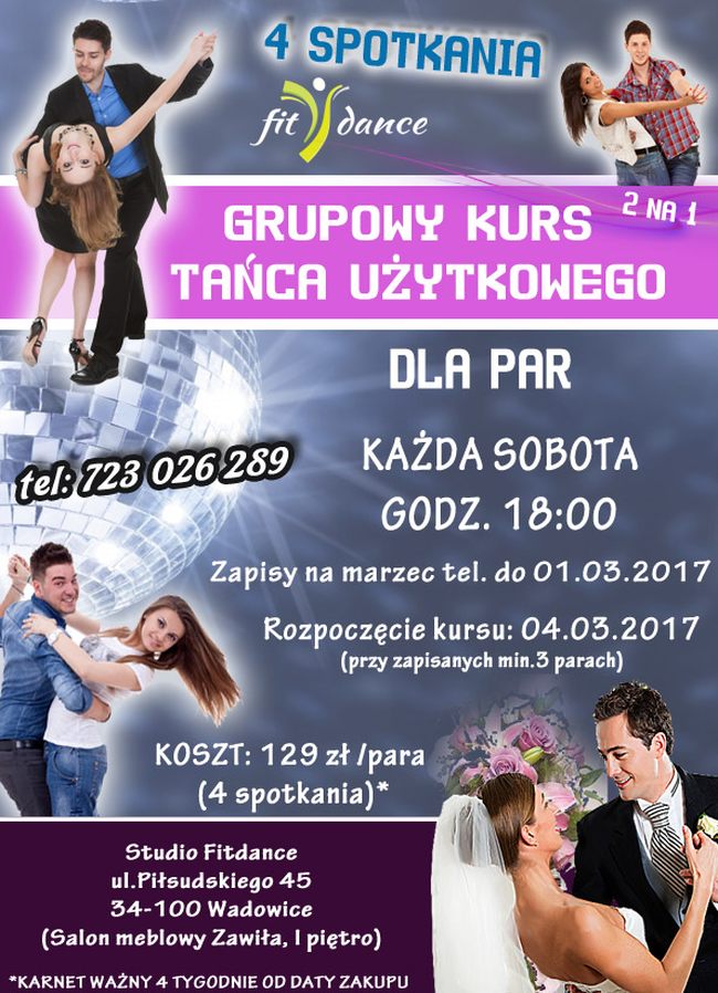 Serdecznie zapraszamy wszystkie pary, na kurs tańca do Fitdance!