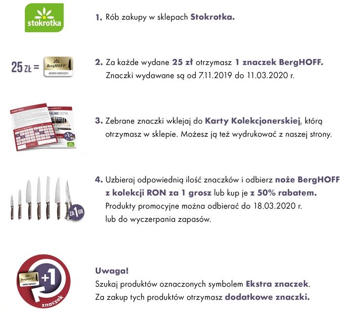 Market Stokrotka w Wadowicach zaprasza do kolejnej akcji promocyjnej. Tym razem robiąc zakupy można zbierać punkty na wysokiej jakości noże firmy Berghoff.