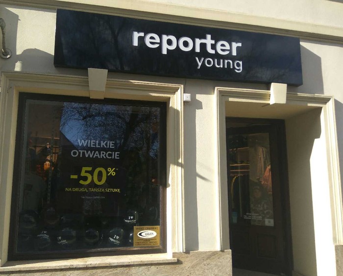 Sklep Reporter Young w Wadowicach mieszczący się na Placu Kościuszki 23 przeszedł metamorfozę, za sprawą której zyskał rebelowy charakter. Na ścianach pojawiło się graffiti, za ladą można zobaczyć odważną grafikę, przymierzalnie zyskały nowoczesny charakter. Nowa, oryginalna odsłona sklepu idealnie oddaje charakter marki i wpisuje się w najnowsze trendy.