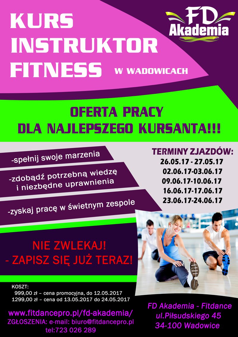 Instruktor fitness – start 26 maj 2017- szczegóły www.fitdancepro.pl/fd-akademia/
